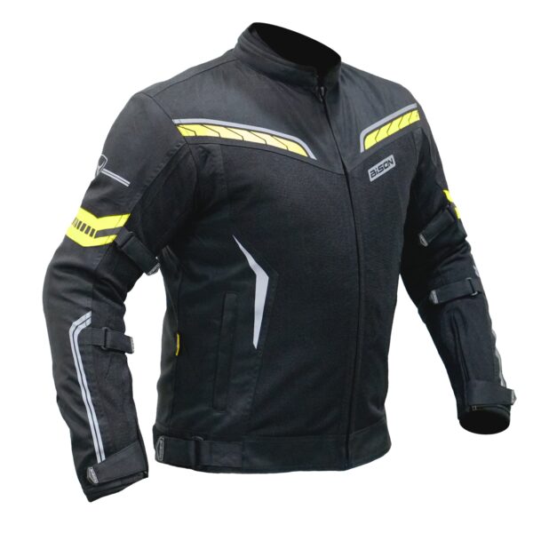 • Made with Polyester 600 DN abrasion resistant Fabric has PU+ WR coating makes the fabric best in class for Motorcycle riding Jacket.